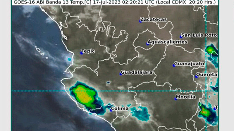 La Comisión Nacional del Agua compartió que en las próximas horas, de las 21:00 a las 00:00 horas del 17 de julio, se presentarán lluvias y chubascos acompañados de descargas eléctricas en el occidente de México.